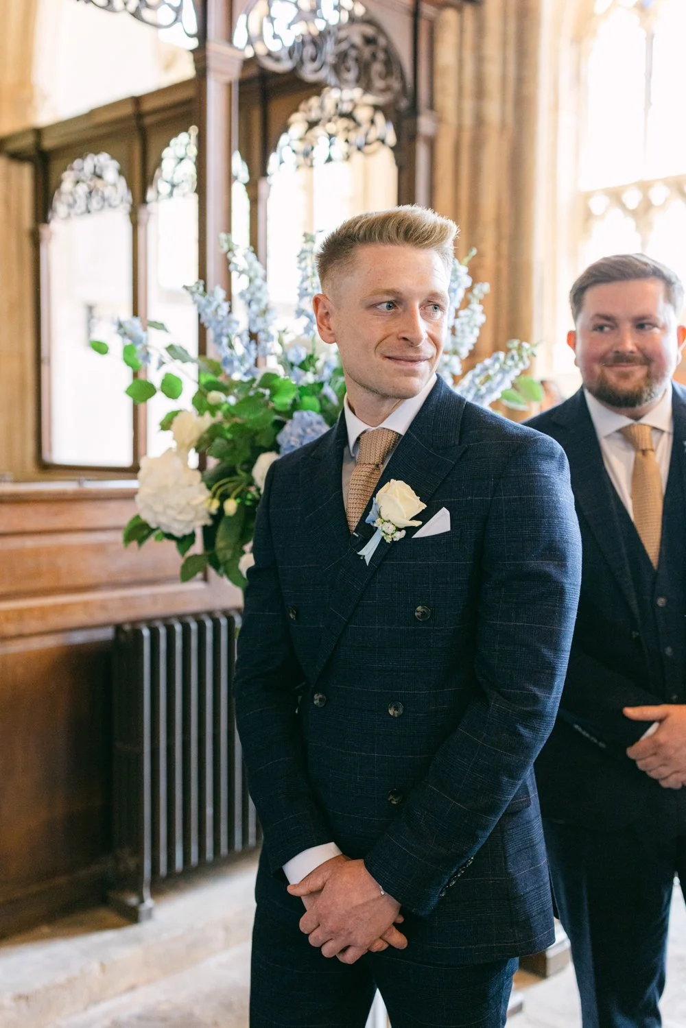 Alicia and Scott's wedding at Crowcombe Court in Somerset was a beautifully styled affair that began with a traditional church ceremony. Our Bride arrived in a gorgeous vintage car, with a the manor house as her backdrop. The couple embraced an English country aesthetic with abundant florals and elegant linen signage, all set within a white and soft blue colour scheme. The late summer sunshine allowed guests to enjoy an outdoor drinks reception and cocktail hour, with plenty of live music and a wonderful atmosphere.