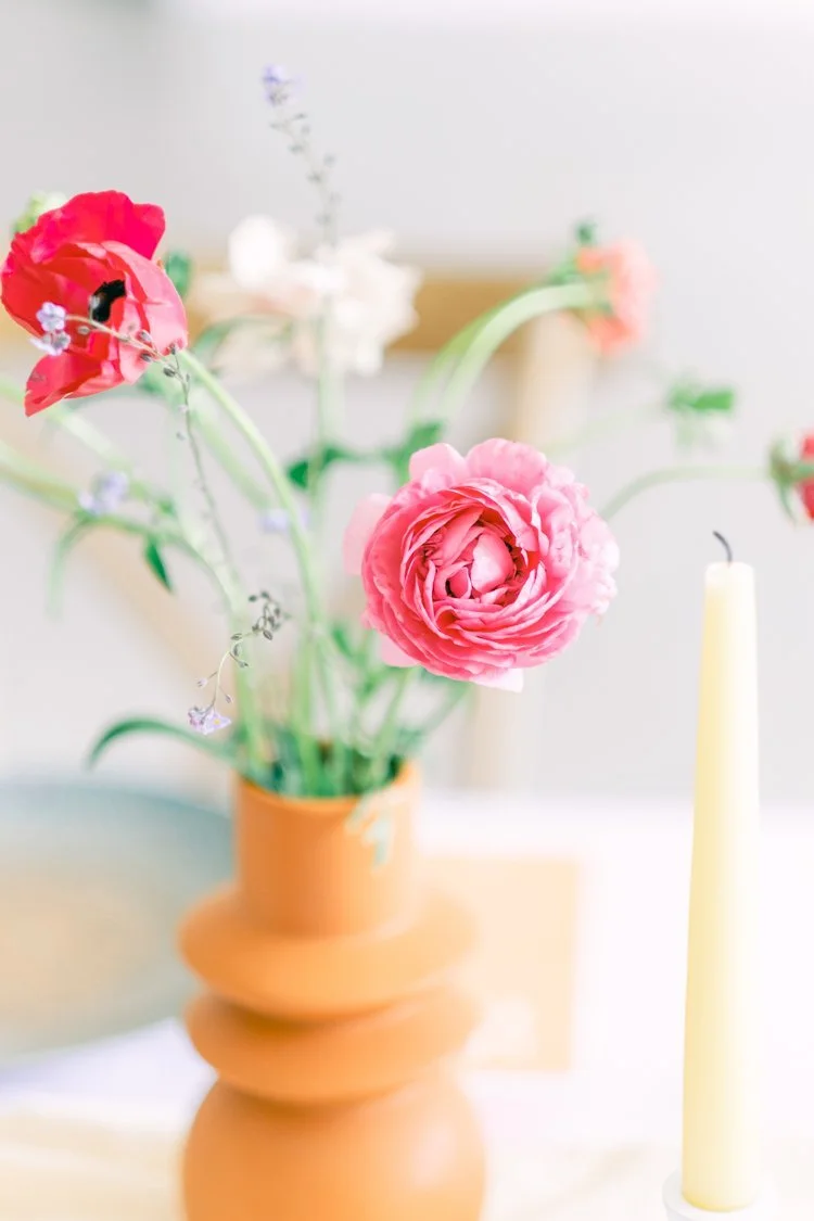 An editorial featuring locally grown British flowers and bright colours at The White Barn…